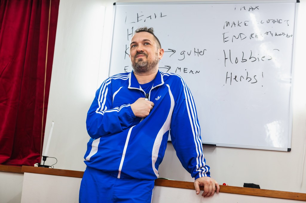 In addition to its renegade structure, Out of Order is also bolstered by Holder’s quirky charisma, which is evident from the start. Our main character may be bemoaning having just turned the big “Four-OH!” and suffering from writer’s block, but his energy level could still rival any neophyte in the business. His style is perfectly suited for interactive theater. As always with performance pieces involving audience participation, the attendees can often make or break a show. Thankfully, this crowd was very receptive to Holder’s boyish, often hilarious charms.