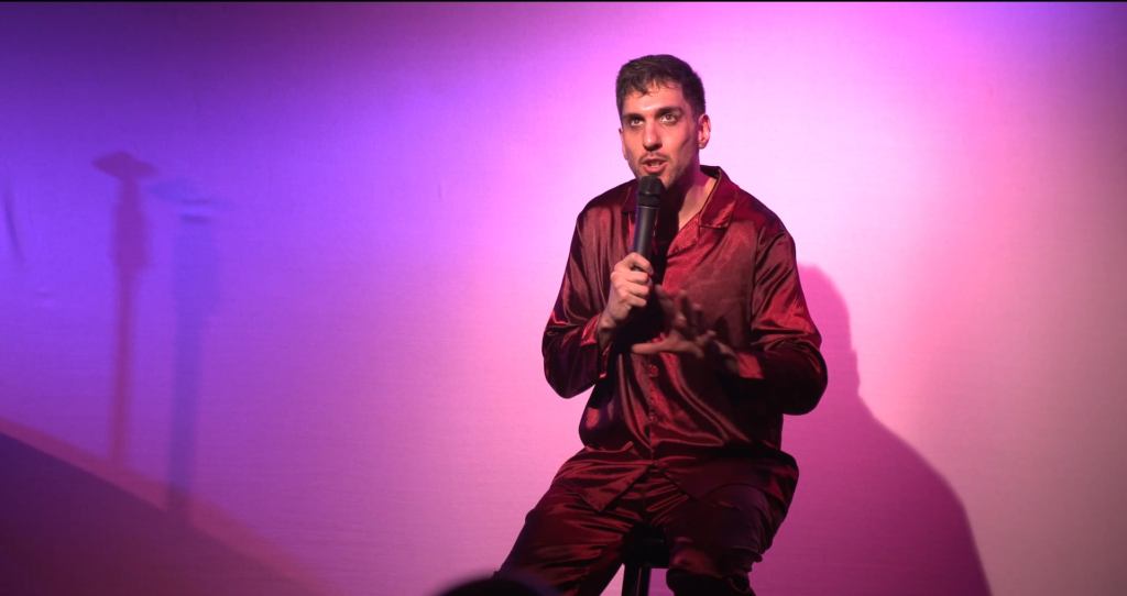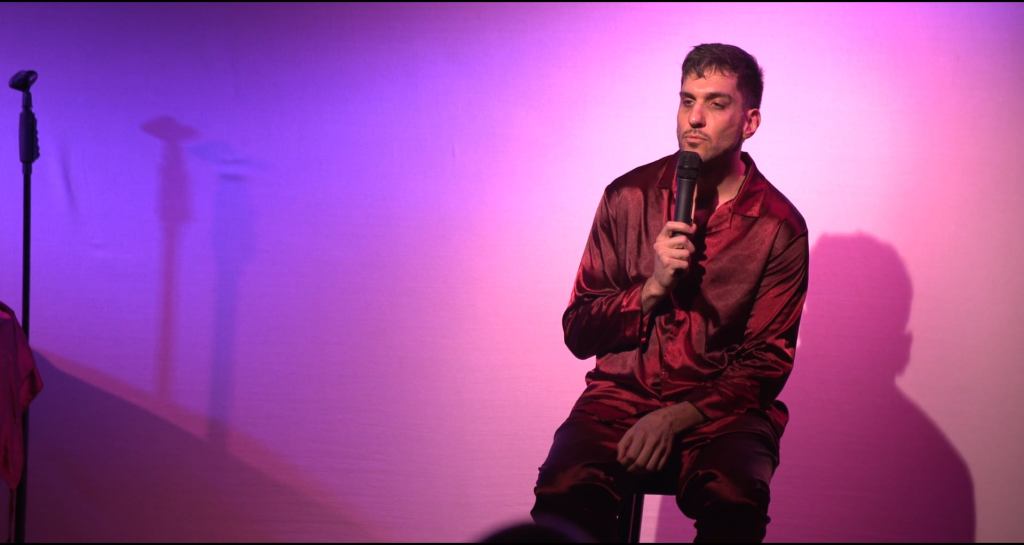 In addition to music, Giraldi’s show also incorporates a lot of philosophy in between the songs and the artist’s occasional personal story. In its official description, Giraldi tells us that his show features the philosophies of “Freud, Unamuno, Derrida, Comte-Sponville, Cioran, Borges, Plato, Nietzsche, Heidegger, and Marx”. Whoa! That’s a lot to squeeze into a show that’s only just over an hour. Mostly, Giraldi uses the philosophies of some of his favorite thinkers to help explain, at least in part, the phenomenon known to every cabaret, cinema, and pop-culture-at-large aficionado as L-O-V-E. But…