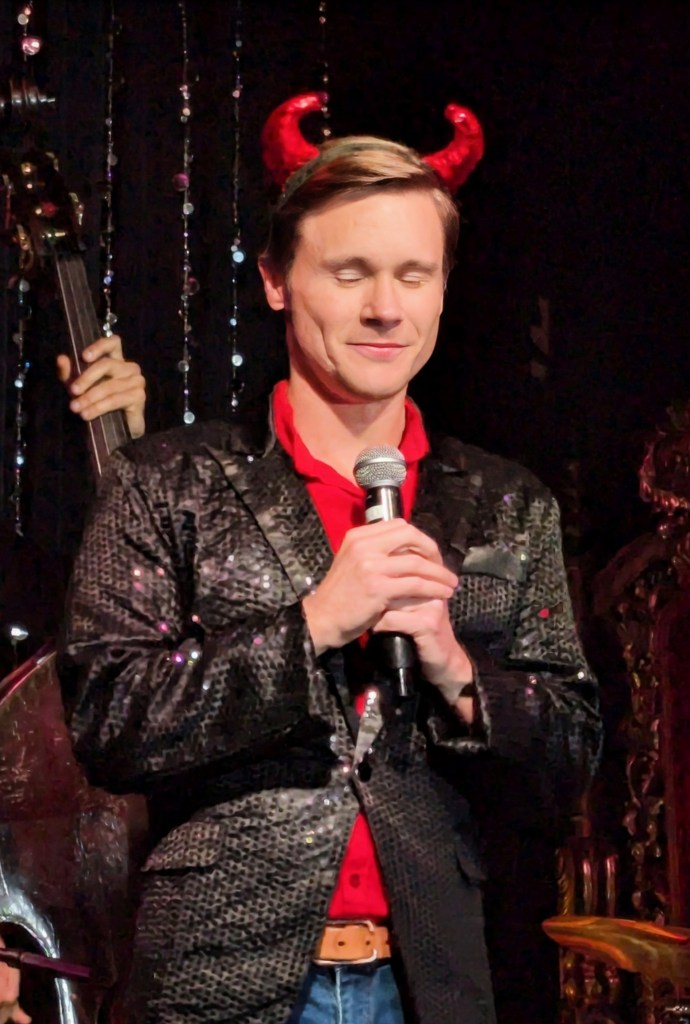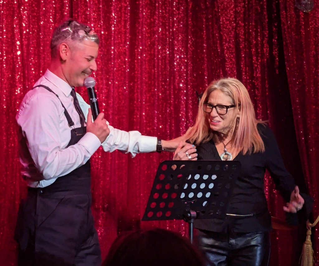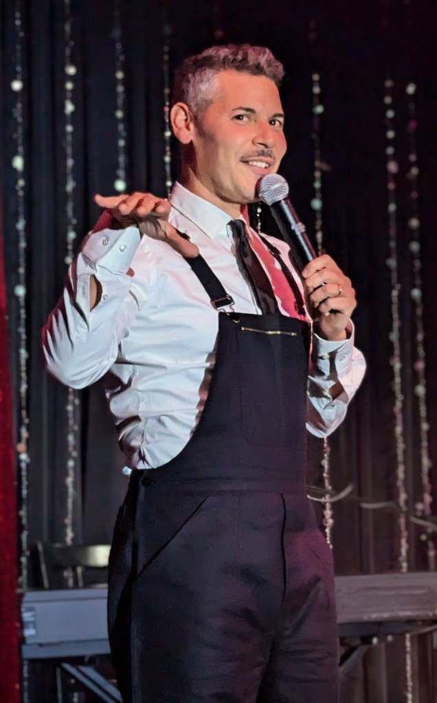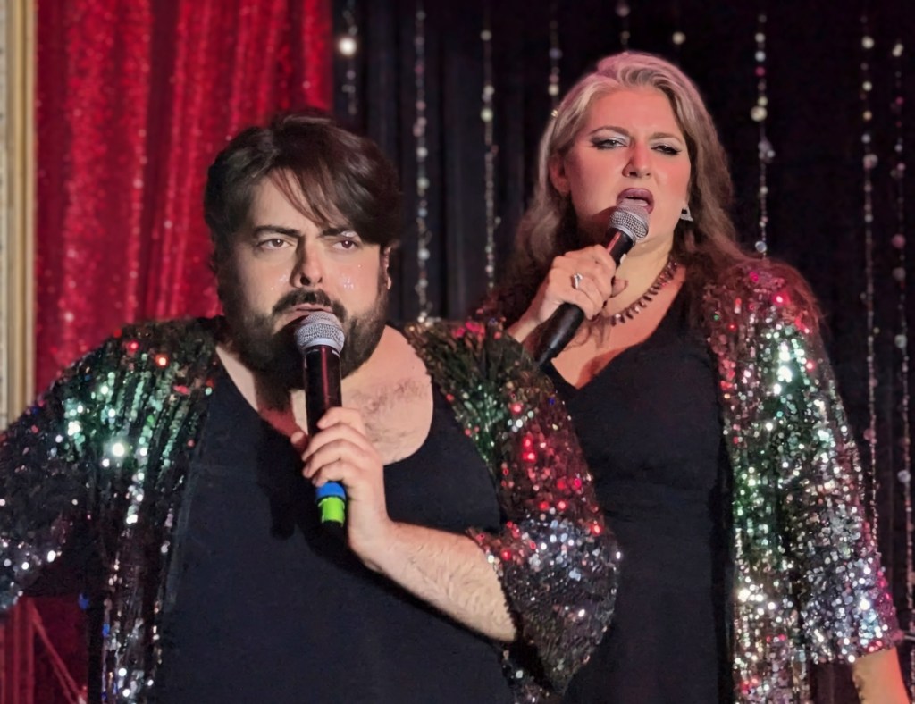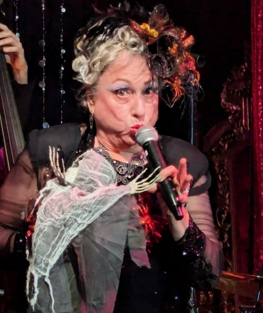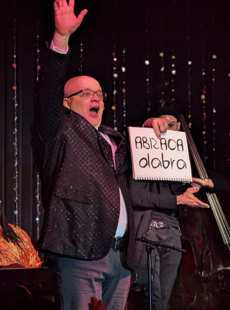 No doubt the hardest working guy in showbiz, Brian the magician worked dangerously closely with a REAL nail and screwdrivers, swallowed razor blades, and even bit the head off a rubber chicken which really bled… but that wasn’t even the most jaw-dropping part of the act. Again, I won’t give too much away… but I will say that his delightfully “cock” sure attitude was perfectly suited for his act! The question went from “How did he do that?” to “How many organs did those razor blades pierce on the way down?!” Comedian Michele Balan was next. A fan of her sarcastic style of humor since the early 2000’s, I appreciated the way her style of humor changed from Sex and the City to And Just Like That. (“They tell me, ‘You should have won Last Comic Standing!’ Maybe I would have, but my fans were so old they couldn’t make that many calls from a rotary phone. Maybe if the number was connected to Life Alert, I would have been a winner!”) In other words, it’s humor made for those of us who know who Elvis… Sammy Davis Jr…. Debbie Gibson is… The truly lovely Summer Rona was next, with I Put a Spell on You. How did this songstress know that this is one of my favorite songs ever? A fine singer, she also puts the “class” back into classic burlesque. It was sexy, seductive, and very “spell”-binding as she segued into an all-out take on Olivia Rodrigo’s Vampire. Next up was another “chanteuse”: Seth Sikes. Sikes proved yet again that Judy Garland can STILL please a crowd even as we see the dawn of 2026. He updated the classic Judy song with a Halloween-esque take: “Rock-a-BOO your rock-a-boo baby with a SPOOKY mel-o-DEEEEE!” Judy fans will understand! When Sikes and Chachi Cruz joined their talents for a duet– the legendary Judy/Barbra medley Hooray for Love— it was truly a transcendent moment.