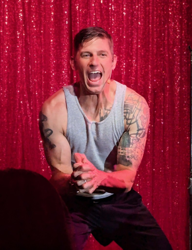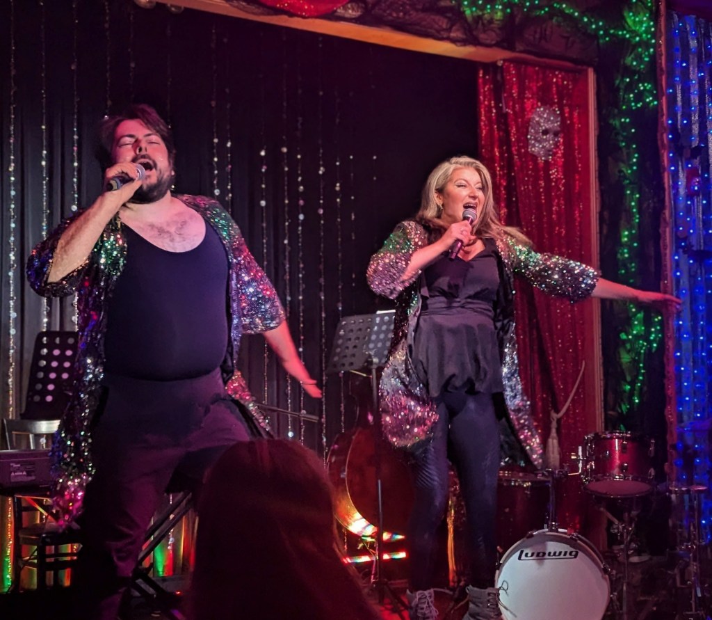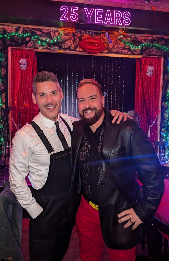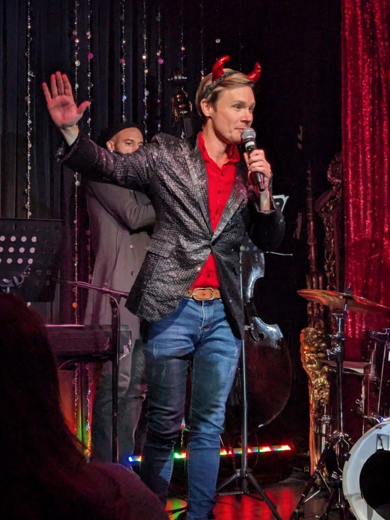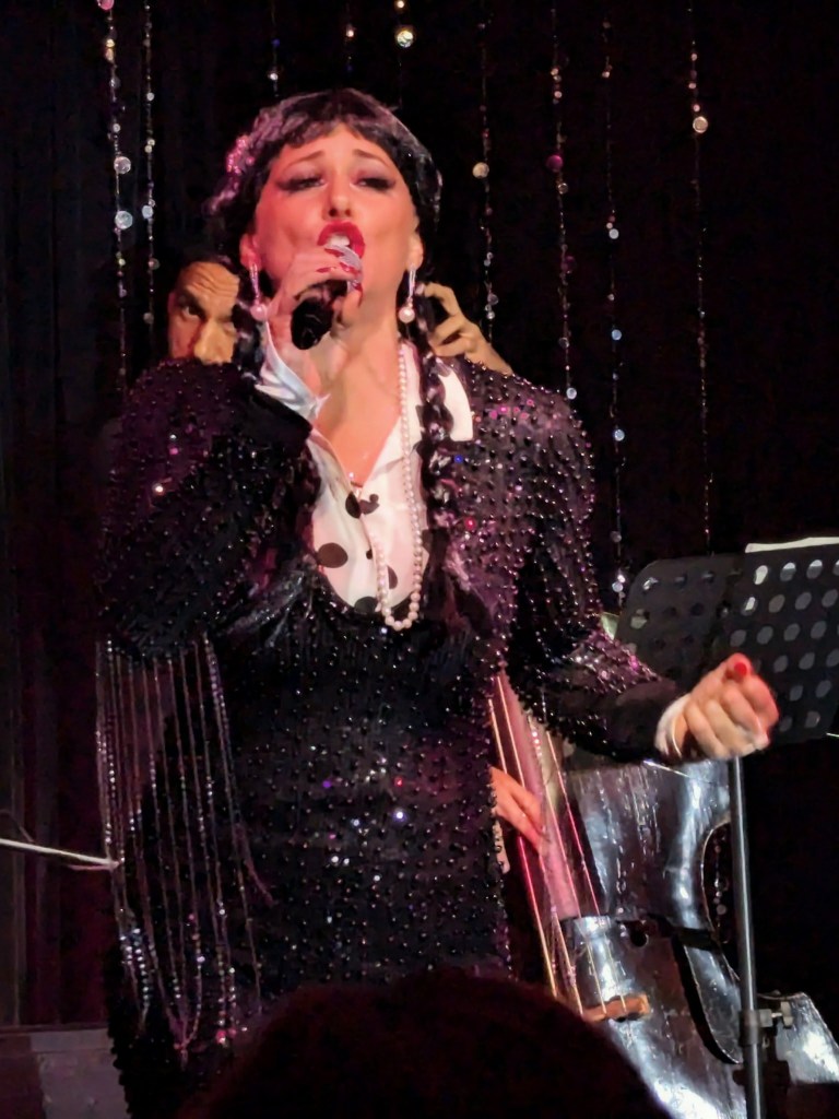 No doubt the hardest working guy in showbiz, Brian the magician worked dangerously closely with a REAL nail and screwdrivers, swallowed razor blades, and even bit the head off a rubber chicken which really bled… but that wasn’t even the most jaw-dropping part of the act. Again, I won’t give too much away… but I will say that his delightfully “cock” sure attitude was perfectly suited for his act! The question went from “How did he do that?” to “How many organs did those razor blades pierce on the way down?!” Comedian Michele Balan was next. A fan of her sarcastic style of humor since the early 2000’s, I appreciated the way her style of humor changed from Sex and the City to And Just Like That. (“They tell me, ‘You should have won Last Comic Standing!’ Maybe I would have, but my fans were so old they couldn’t make that many calls from a rotary phone. Maybe if the number was connected to Life Alert, I would have been a winner!”) In other words, it’s humor made for those of us who know who Elvis… Sammy Davis Jr…. Debbie Gibson is… The truly lovely Summer Rona was next, with I Put a Spell on You. How did this songstress know that this is one of my favorite songs ever? A fine singer, she also puts the “class” back into classic burlesque. It was sexy, seductive, and very “spell”-binding as she segued into an all-out take on Olivia Rodrigo’s Vampire. Next up was another “chanteuse”: Seth Sikes. Sikes proved yet again that Judy Garland can STILL please a crowd even as we see the dawn of 2026. He updated the classic Judy song with a Halloween-esque take: “Rock-a-BOO your rock-a-boo baby with a SPOOKY mel-o-DEEEEE!” Judy fans will understand! When Sikes and Chachi Cruz joined their talents for a duet– the legendary Judy/Barbra medley Hooray for Love— it was truly a transcendent moment.