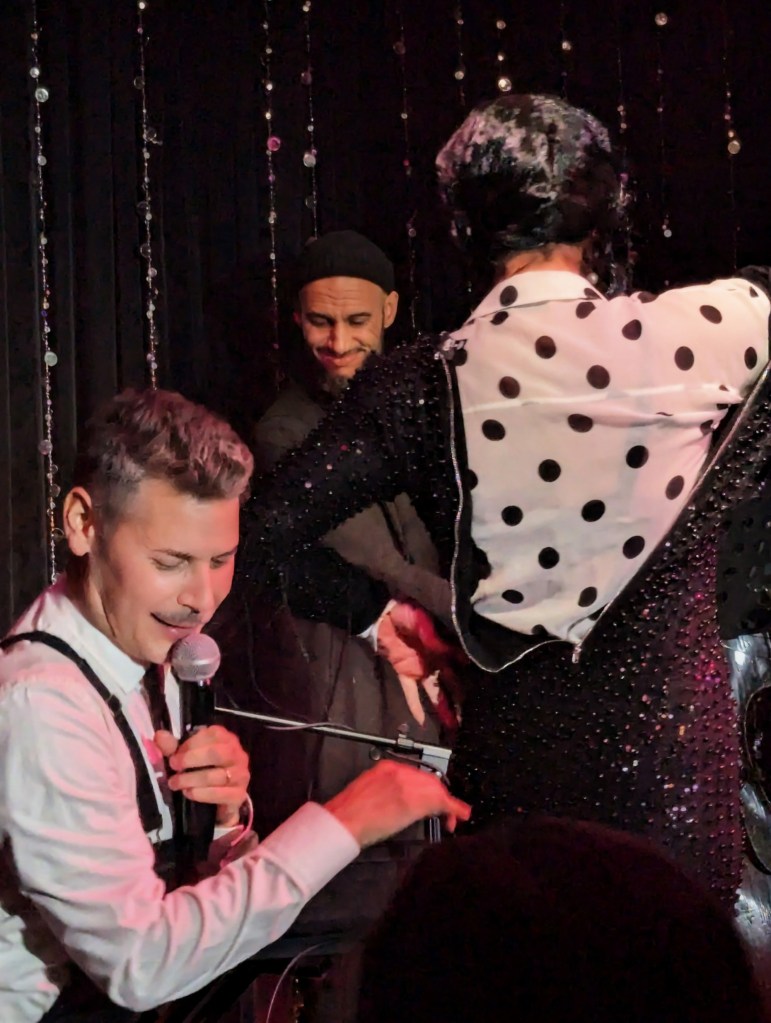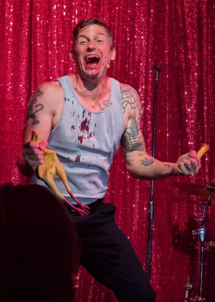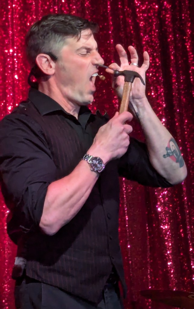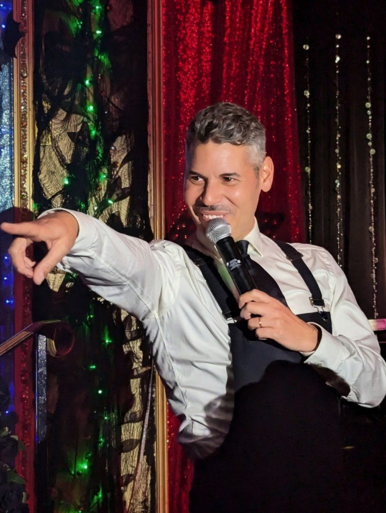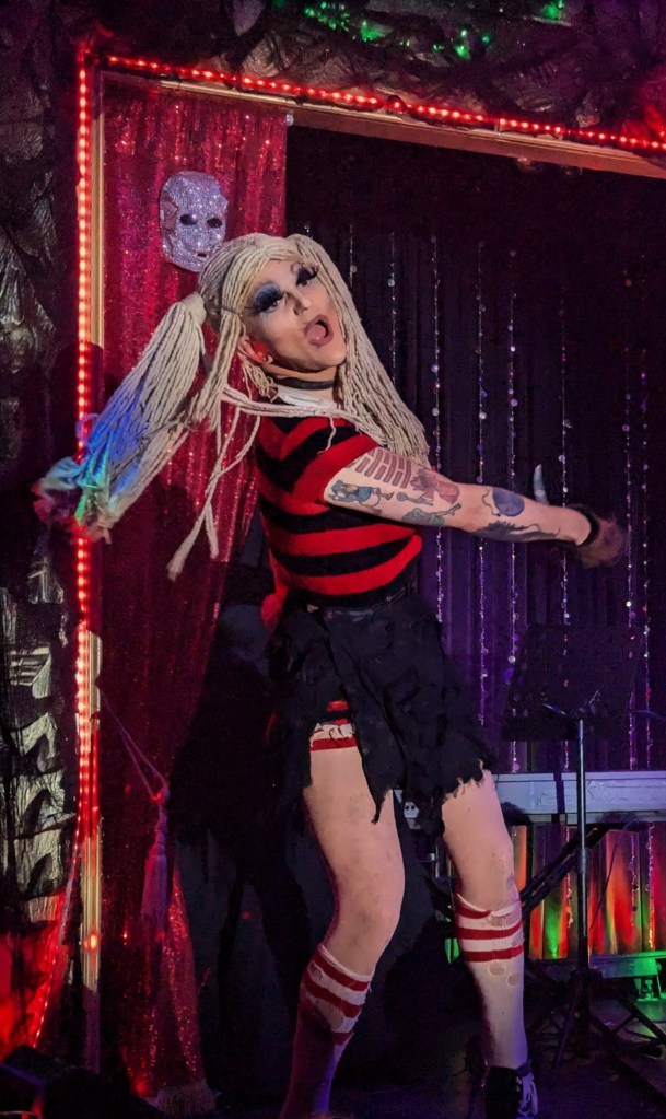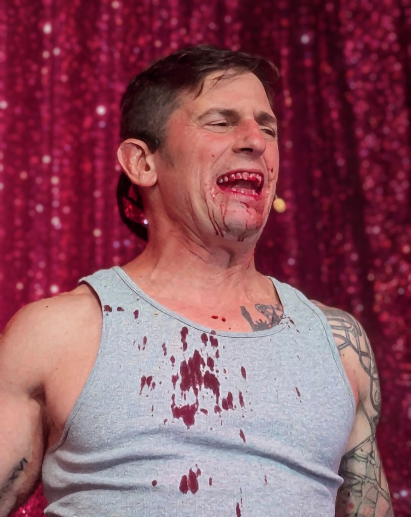 No doubt the hardest working guy in showbiz, Brian the magician worked dangerously closely with a REAL nail and screwdrivers, swallowed razor blades, and even bit the head off a rubber chicken which really bled… but that wasn’t even the most jaw-dropping part of the act. Again, I won’t give too much away… but I will say that his delightfully “cock” sure attitude was perfectly suited for his act! The question went from “How did he do that?” to “How many organs did those razor blades pierce on the way down?!” Comedian Michele Balan was next. A fan of her sarcastic style of humor since the early 2000’s, I appreciated the way her style of humor changed from Sex and the City to And Just Like That. (“They tell me, ‘You should have won Last Comic Standing!’ Maybe I would have, but my fans were so old they couldn’t make that many calls from a rotary phone. Maybe if the number was connected to Life Alert, I would have been a winner!”) In other words, it’s humor made for those of us who know who Elvis… Sammy Davis Jr…. Debbie Gibson is… The truly lovely Summer Rona was next, with I Put a Spell on You. How did this songstress know that this is one of my favorite songs ever? A fine singer, she also puts the “class” back into classic burlesque. It was sexy, seductive, and very “spell”-binding as she segued into an all-out take on Olivia Rodrigo’s Vampire. Next up was another “chanteuse”: Seth Sikes. Sikes proved yet again that Judy Garland can STILL please a crowd even as we see the dawn of 2026. He updated the classic Judy song with a Halloween-esque take: “Rock-a-BOO your rock-a-boo baby with a SPOOKY mel-o-DEEEEE!” Judy fans will understand! When Sikes and Chachi Cruz joined their talents for a duet– the legendary Judy/Barbra medley Hooray for Love— it was truly a transcendent moment.