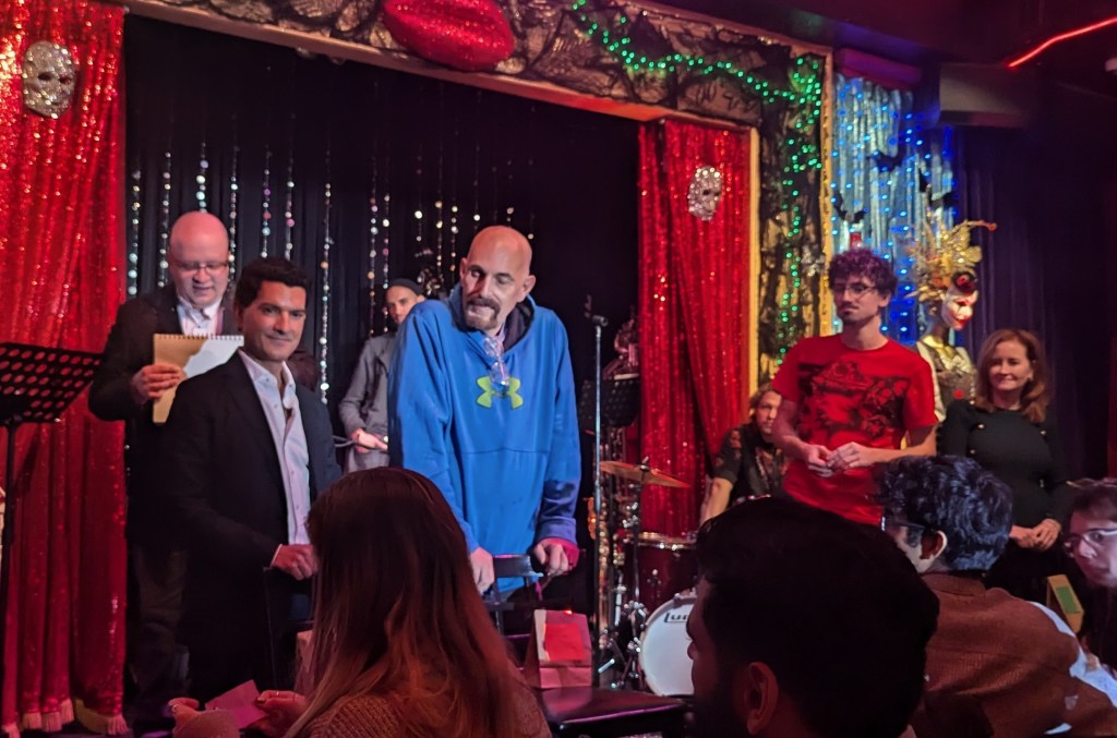 Next up was BNO (Big Nite Out!) resident performer George Winters, who in the words of host Chachi Cruz, puts the “sin” in “Cincinnati”! Like Vivienne LaBarbera’s choice of The Headless Horseman, Mr. Winters unearthed another macabre bauble: The Irish Ballad by Tom Lehrer. The lyrics of this one have to be heard to be believed, and Winter gave the, total justice.