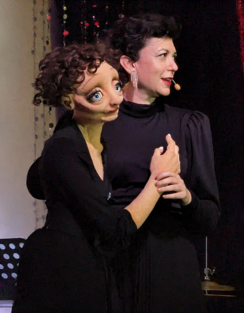 Next up was Yael Rasooly and her “friend”, who was actually a puppet. Yael’s mini-me looked somewhat familiar. Before the name “Edith” was even said, this pop culture fiend knew immediately who this puppet was: the slightly “jaune” skin, the wide but world-weary eyes, and the oddly melancholy expression gave it away. (That’s “Ms. Piaf” to you…). Yael and “Edith” dueled for dominance for the oh-so-French classic La Vie en Rose. It must be seen to be believed; little Ms. Piaf really came ALIVE during this act. (After a few cocktails, you won’t even think “Edith” was a puppet… especially when she ever-so-elegantly dropped the F-bomb.) And, the audience was even singing along… in French!